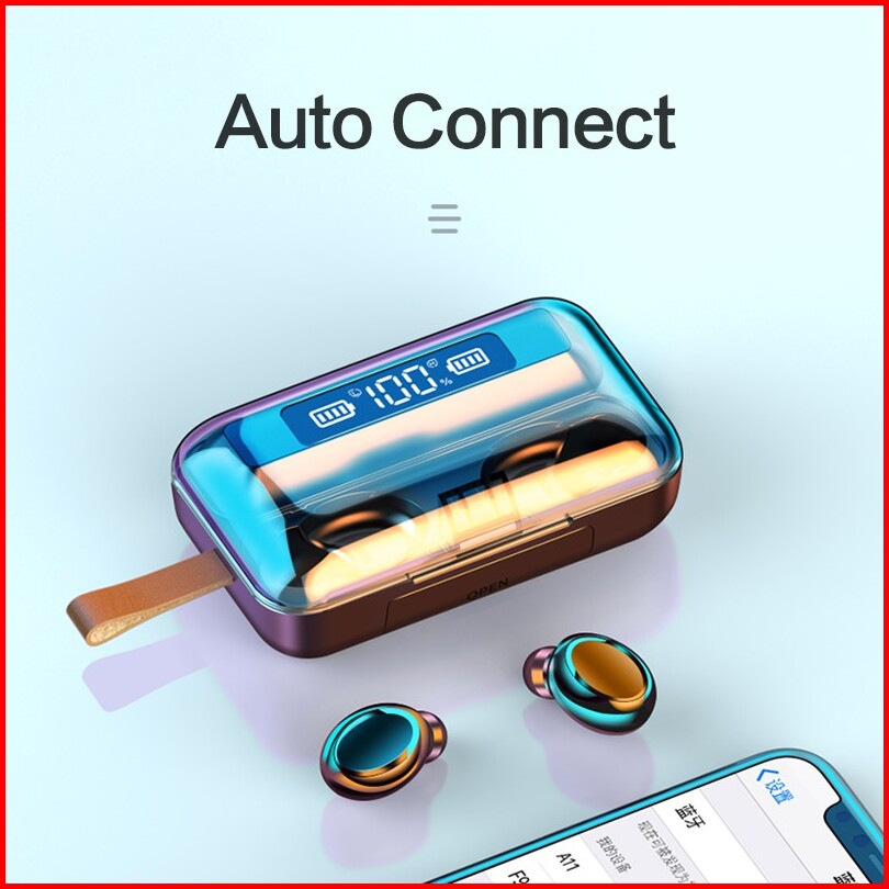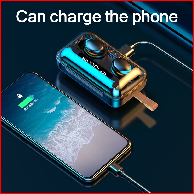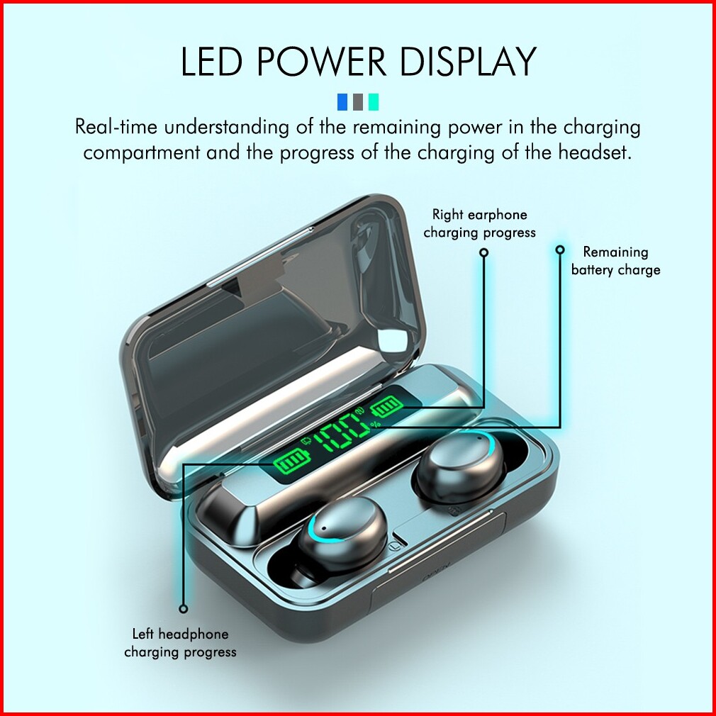 Headset Tws Waterproof Plus Powerbank Wireless Bluetooth 5.0 In Ear F9 Earphone Wireless F9 Original