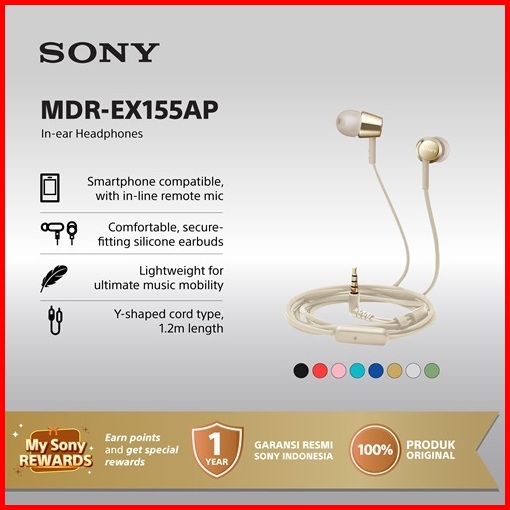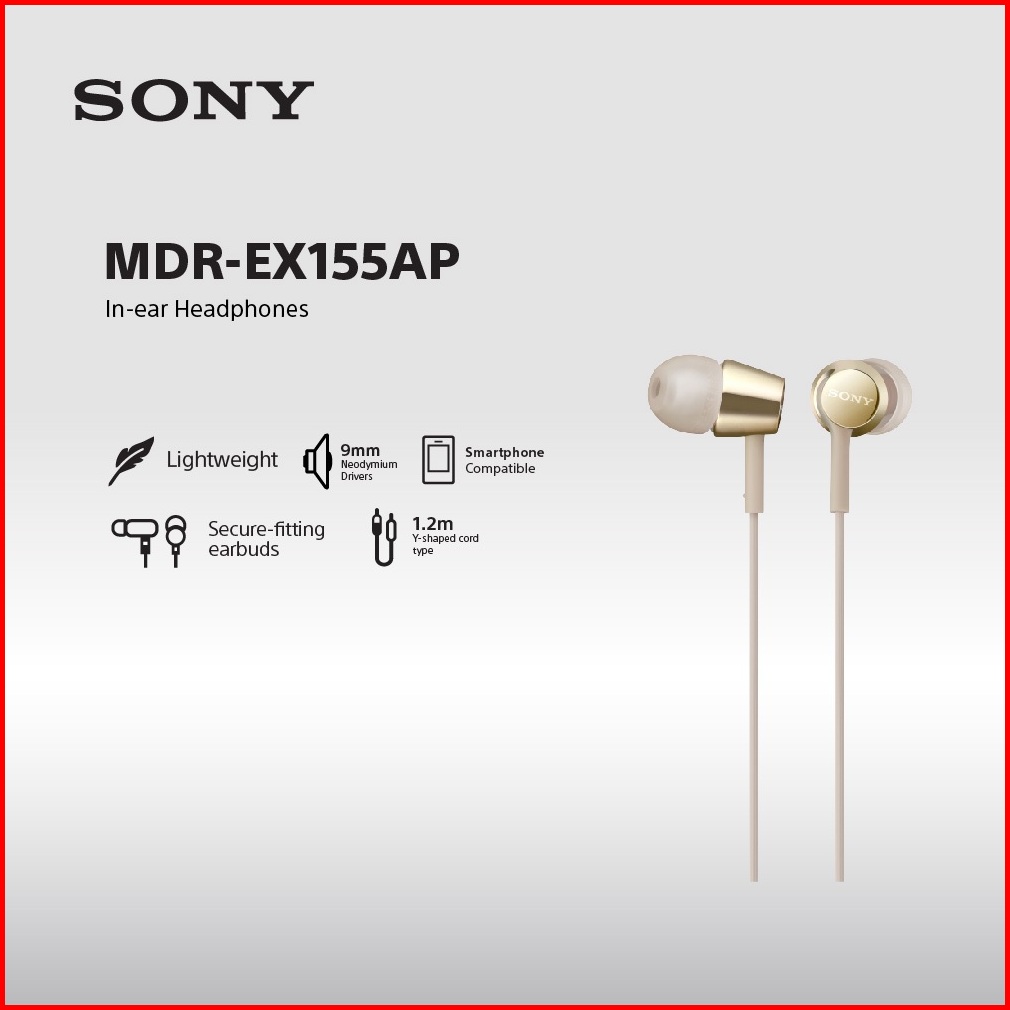 Earphone Sony Mdr-ex155ap Wire Headset With Microphone - Sony Earphone Original