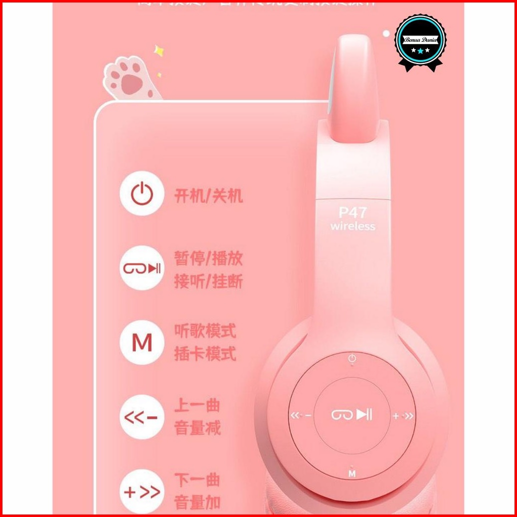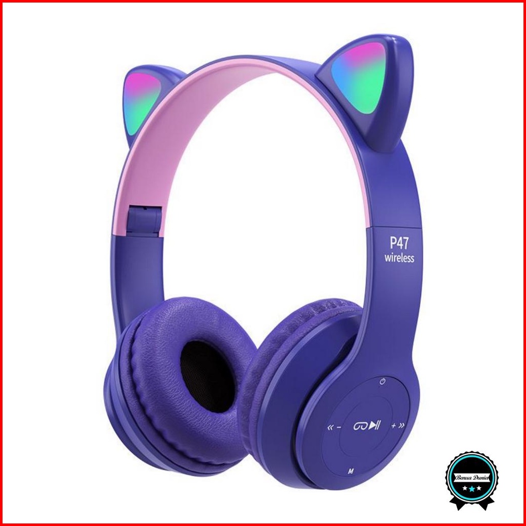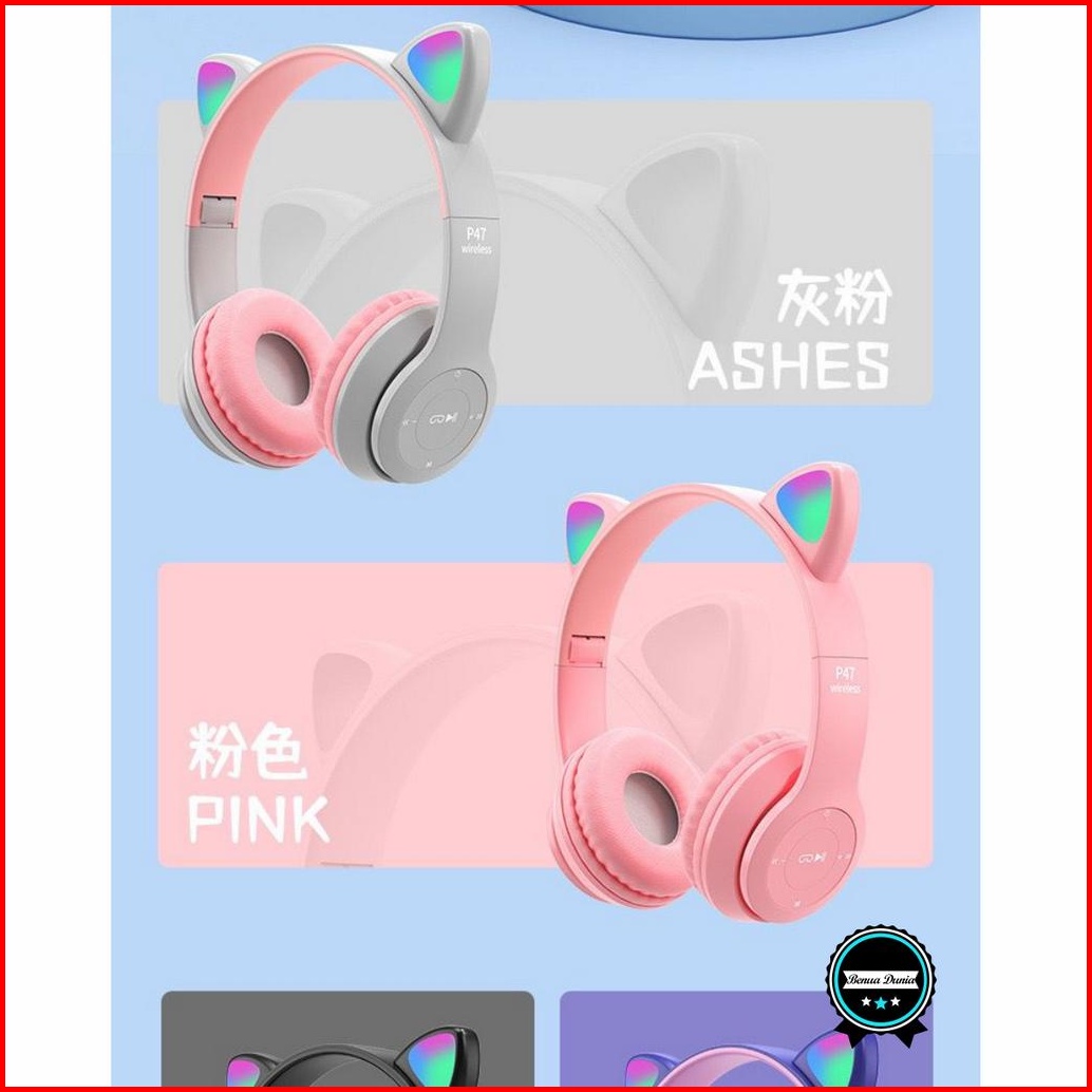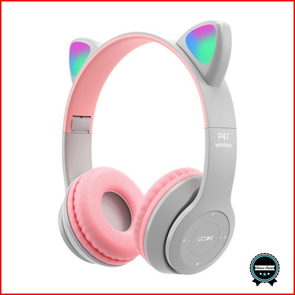 Cat Ears Headset Headphone Hf Bando Telinga Kucing P47m Led Bando Bluetooth Wireles Rgb Game Headset G-p47m Led Wireless