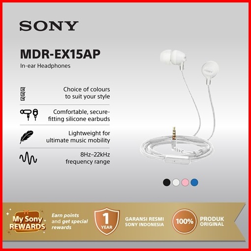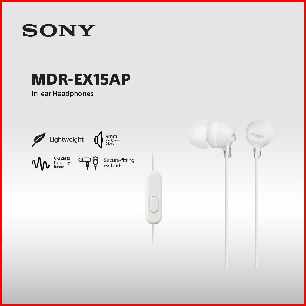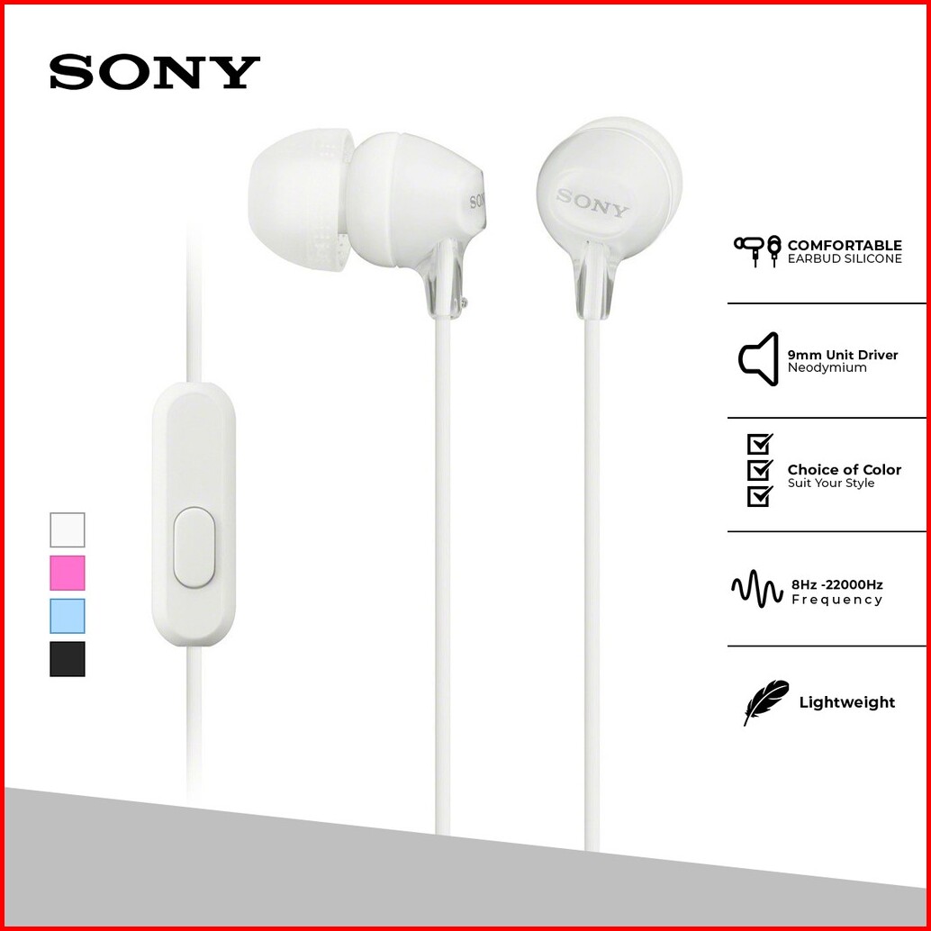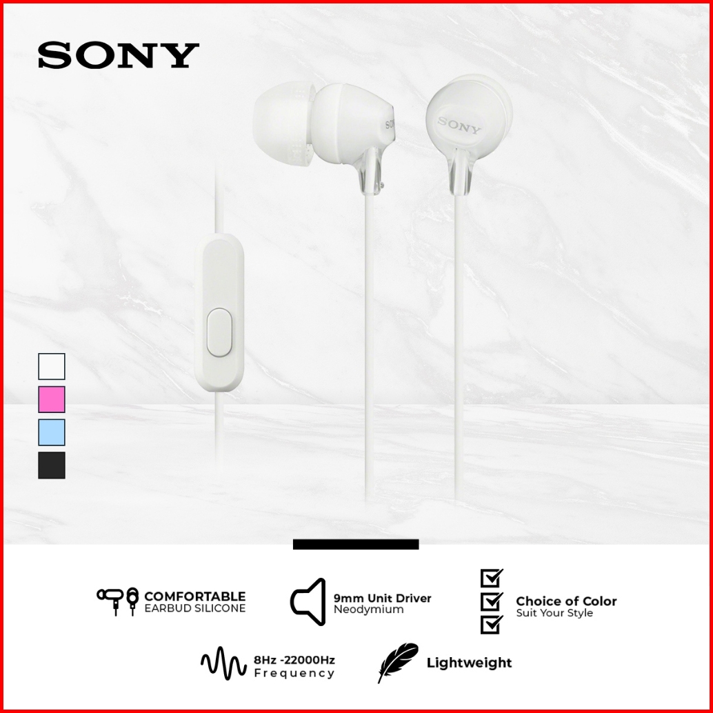 Earphone Sony Mdr-ex15ap Handsfree In-ear With Microphone - White Sony Earphone Headset Headphone Original