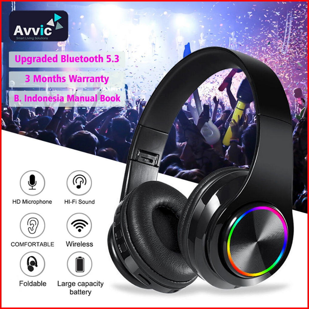 Avvic B39 Wireless Headset Led Headphone Hifi Bass Music Bluetooth 5.3 With Mikrofon Laptop Computer