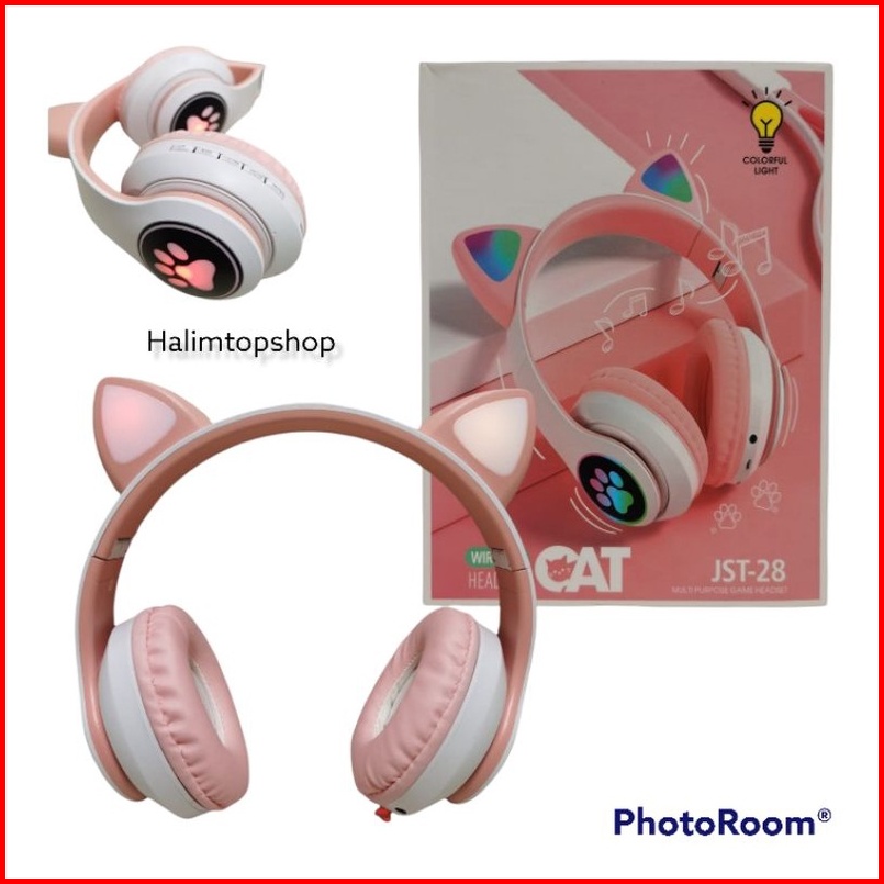 Headphone Karakter Kucing Bluetooth Jst28 Handsfree Bluetooth Viv23m Headphone Kucing Warna Lucu