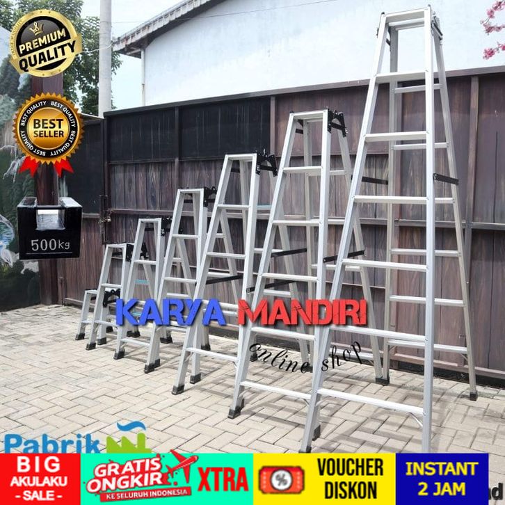 Tangga Lipat Aluminium Super Jumbo 5Tangga Lipat Alumi00 Kg - Ukuran 1 M / 1,25 M / 1,5 M / 1,75 M / 2 M / 2,5 M / Grand