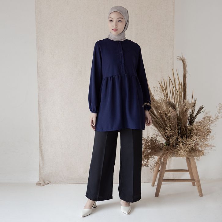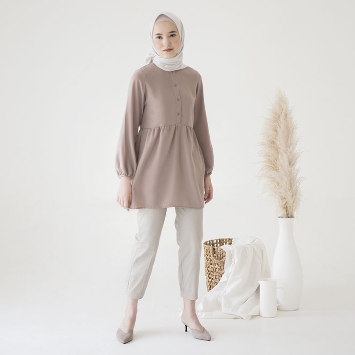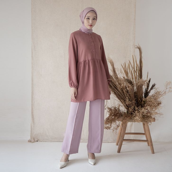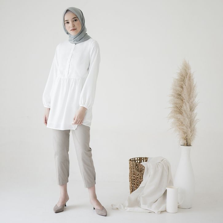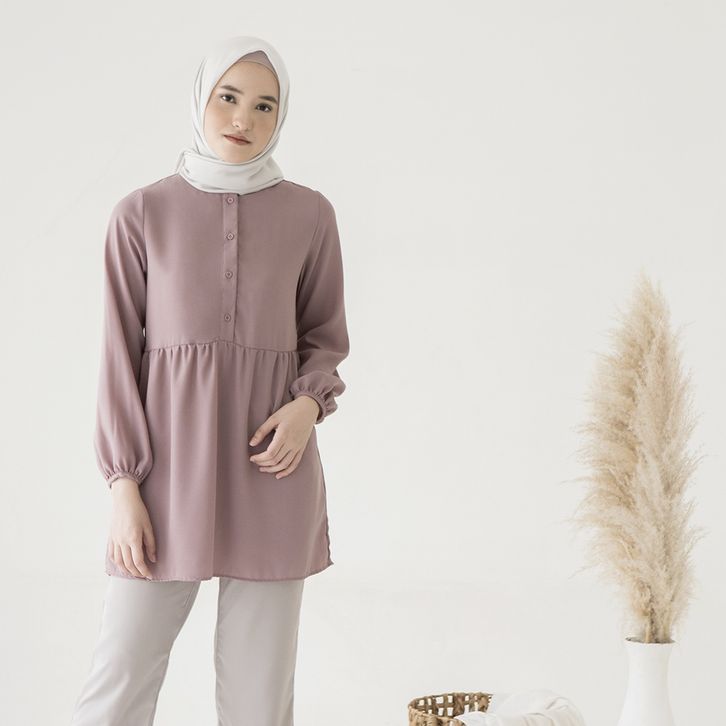 (TERMURAH)Naura by Aska Label - Atasan basic wanita blouse warna putih , navy, ungu lilac, abu taupe, dusty pink rasp