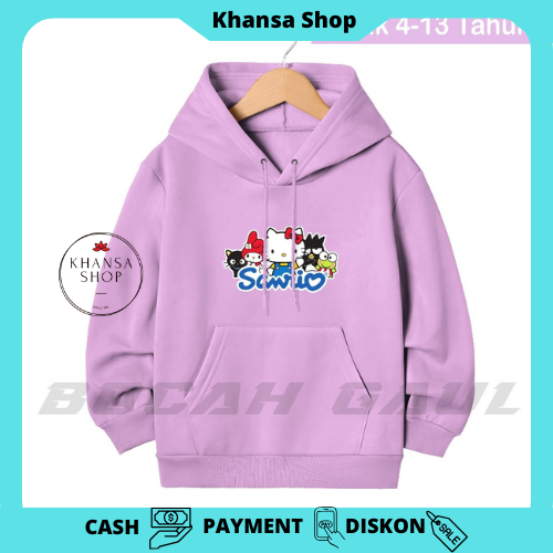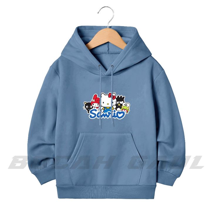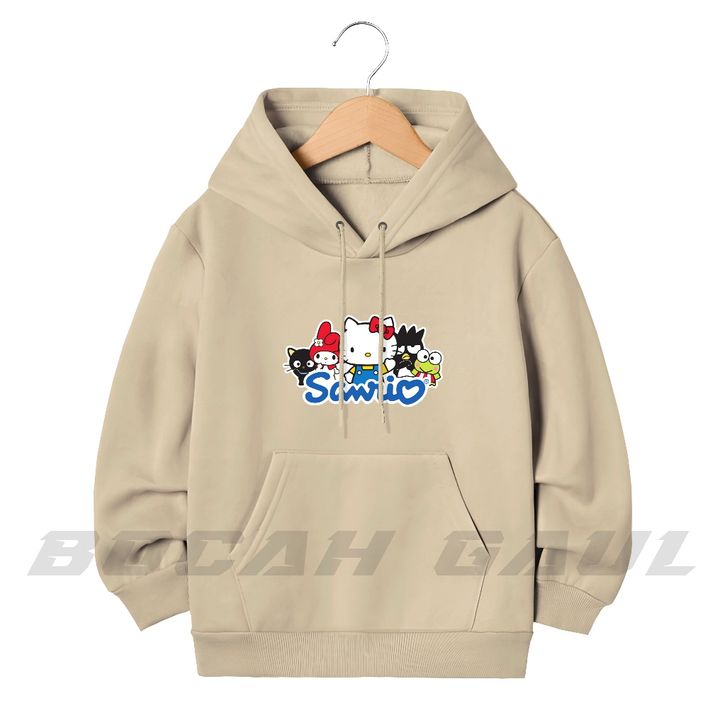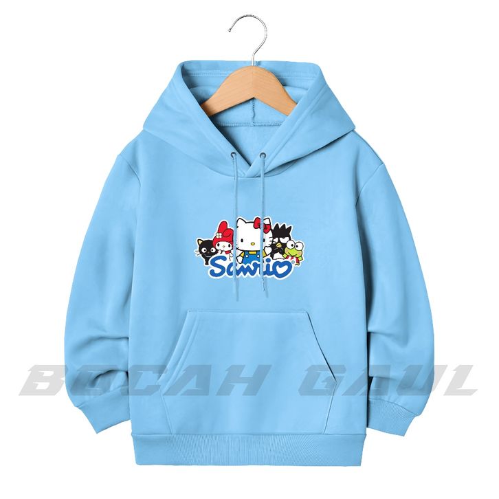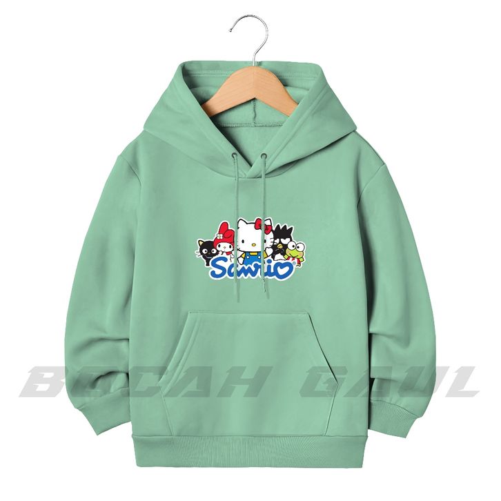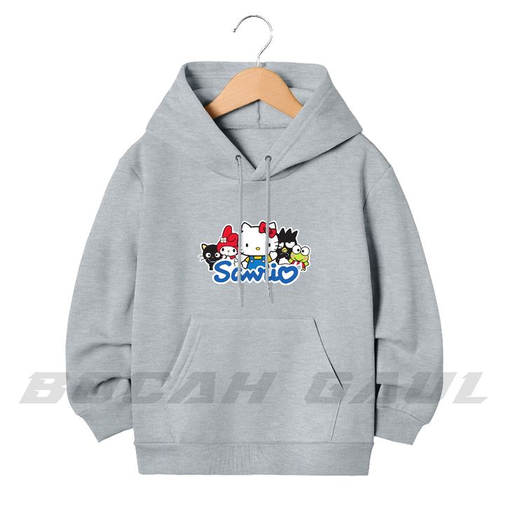 Sweater Hoodie Anak Laki Laki Perempuan Hoodie Anak Motif Sablon Sanrio bahan Fleece Tebal Jaket Anak Usia 4-13 Tahun