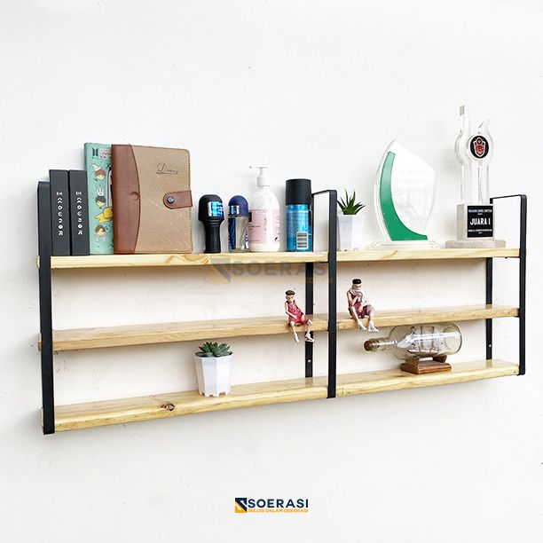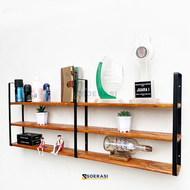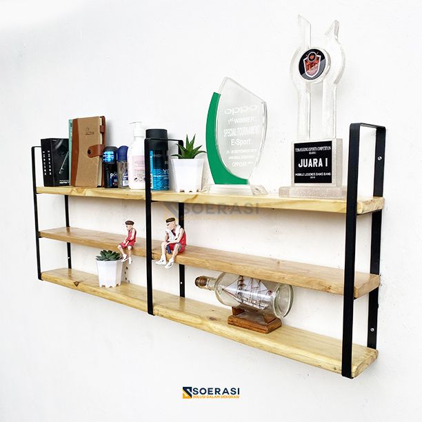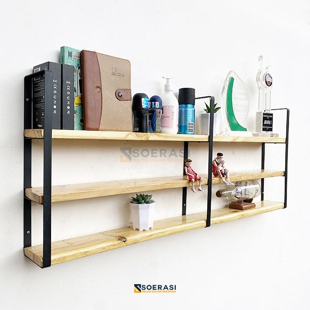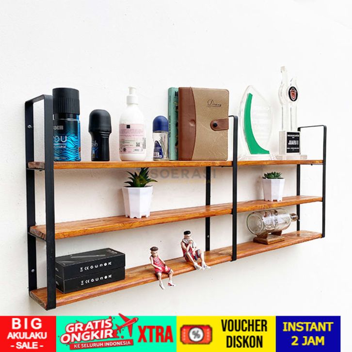 GRATIS ONGKIR FUJI 1M Rak Dinding 3 Ambalan Kayu BeFUJI 1M Rak Dinding 3 Ambalan Kayu Besi Buku Make Upsi Buku Make Up
