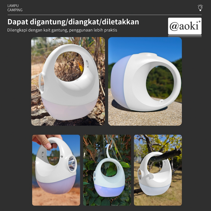 Lampu Camping Praktis Daya Tahan Lama 2400mah Dual Baterai Senter Dimmer Dapat Digantung