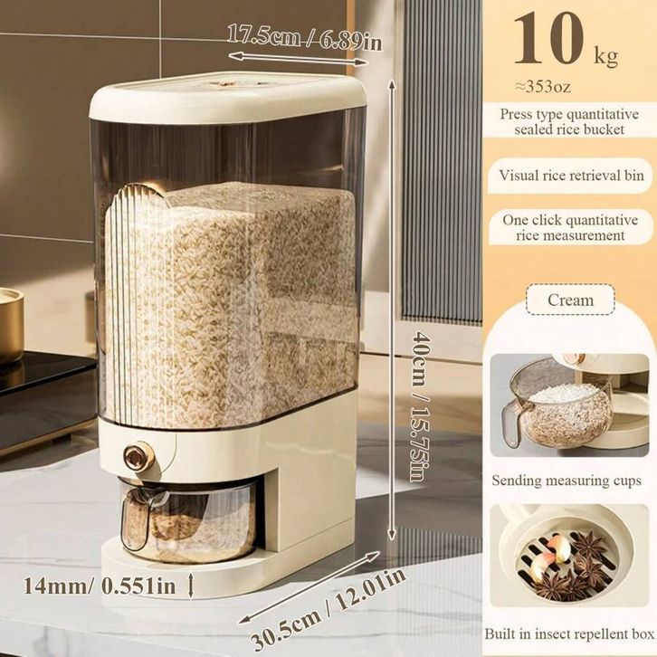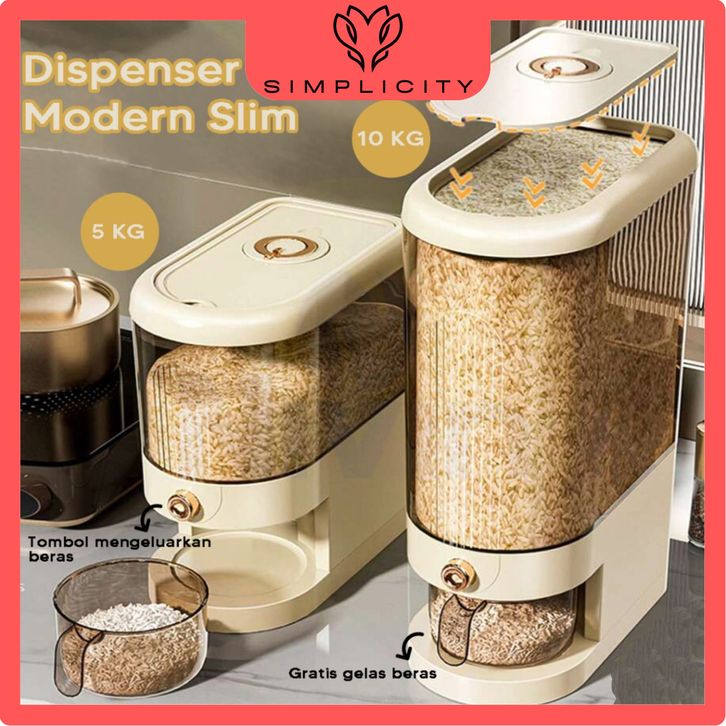 Dispenser Beras Otomatis Mewah Estetik 5 KG 10 KG/ Tempat Beras Mewah Anti Kutu dan Serangga/ Kotak Tempat Wadah