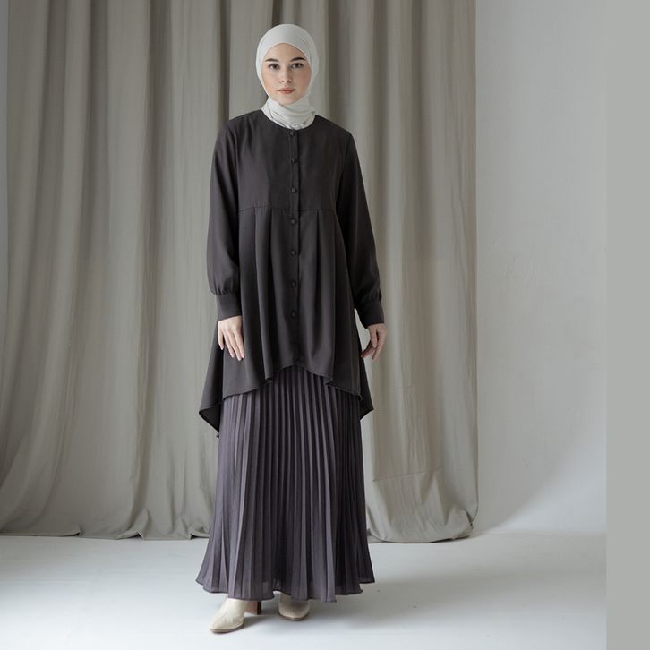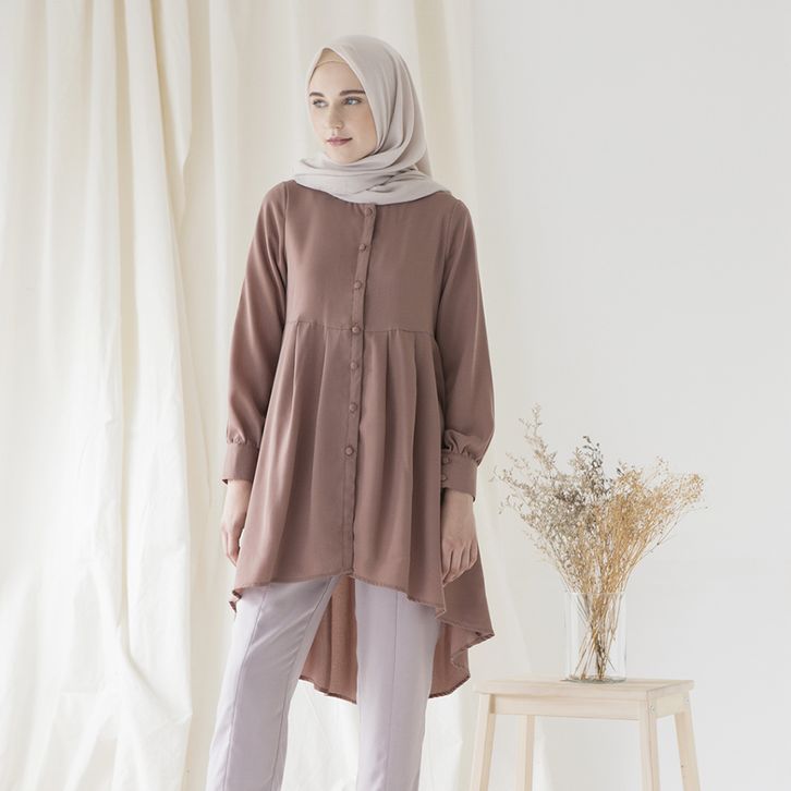 (TERLARIS)Naira by Aska Label - Tunik full kancing busui friendly warna Putih (Berfuring), Redbud, Taupe, Burgundy, ,