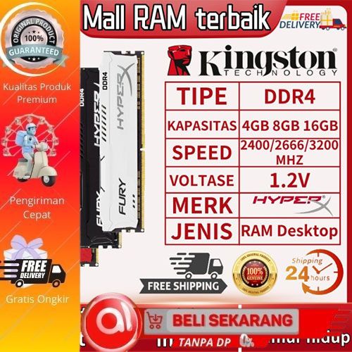 GRATIS/ KINGSTON HYPERX DDR4 RAM 4GB/8GB/16GB 2400/2666/3200MHZ DESKTOP - 4GB 2666MHZ, PUTIH