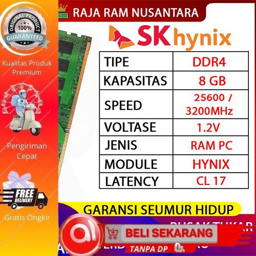 GRATIS/ RAM PC HYNIX DDR4 8GB 25600 / 3200 MHZ ORI RAM PC DDR4 8GB 3200 MHZ