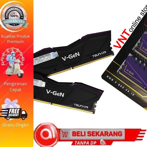 GRATIS/ V-GEN TSUNAMI DDR4 (2X4GB) 8GB 3000MHZ | RAM GAMING DUAL CHANNEL VGEN - CL 15-17-17-35, TSUNAMI HITAM