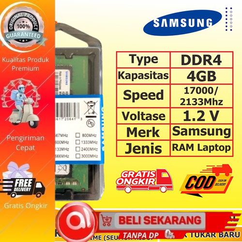 GRATIS/ RAM LAPTOP MEMORY SODIMM DDR4 4GB 8GB PC4 2133MHZ / 2400MHZ - 4GB SAMSUNG, 2400MHZ