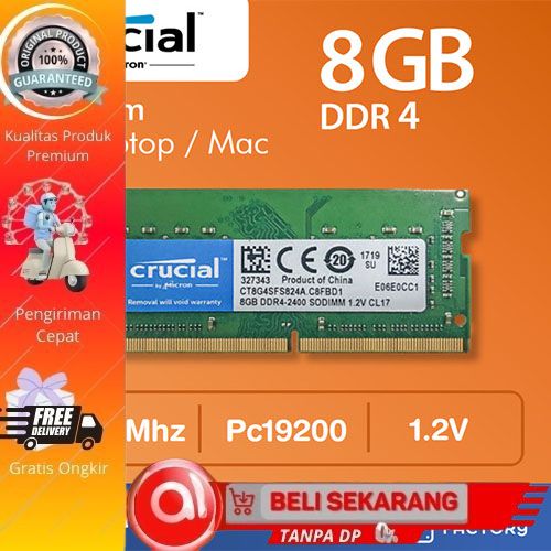 GRATIS/ RAM LAPTOP CRUCIAL DDR4 8GB 2400MHZ PC19200 SODIMM NOTEBOOK MEMORY ORI