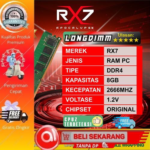 GRATIS/ RAM RX7 LONGDIMM DDR4 8GB 2666 MHZ PC 21300 RAM GARANSI RESMI