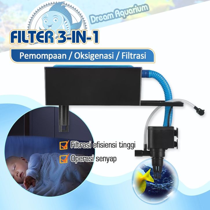 Filter Pompa Komplit Top Filter Box Akuarium 3 In 1