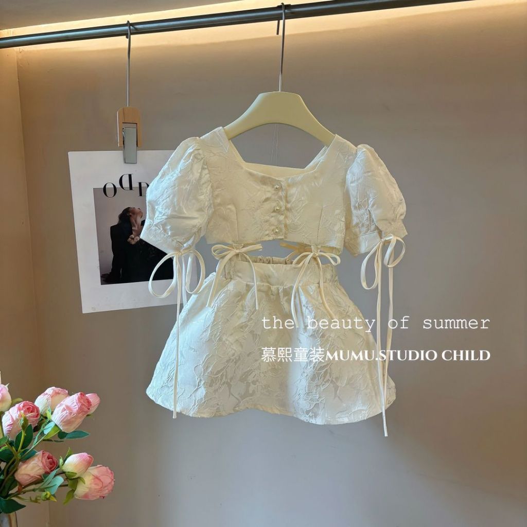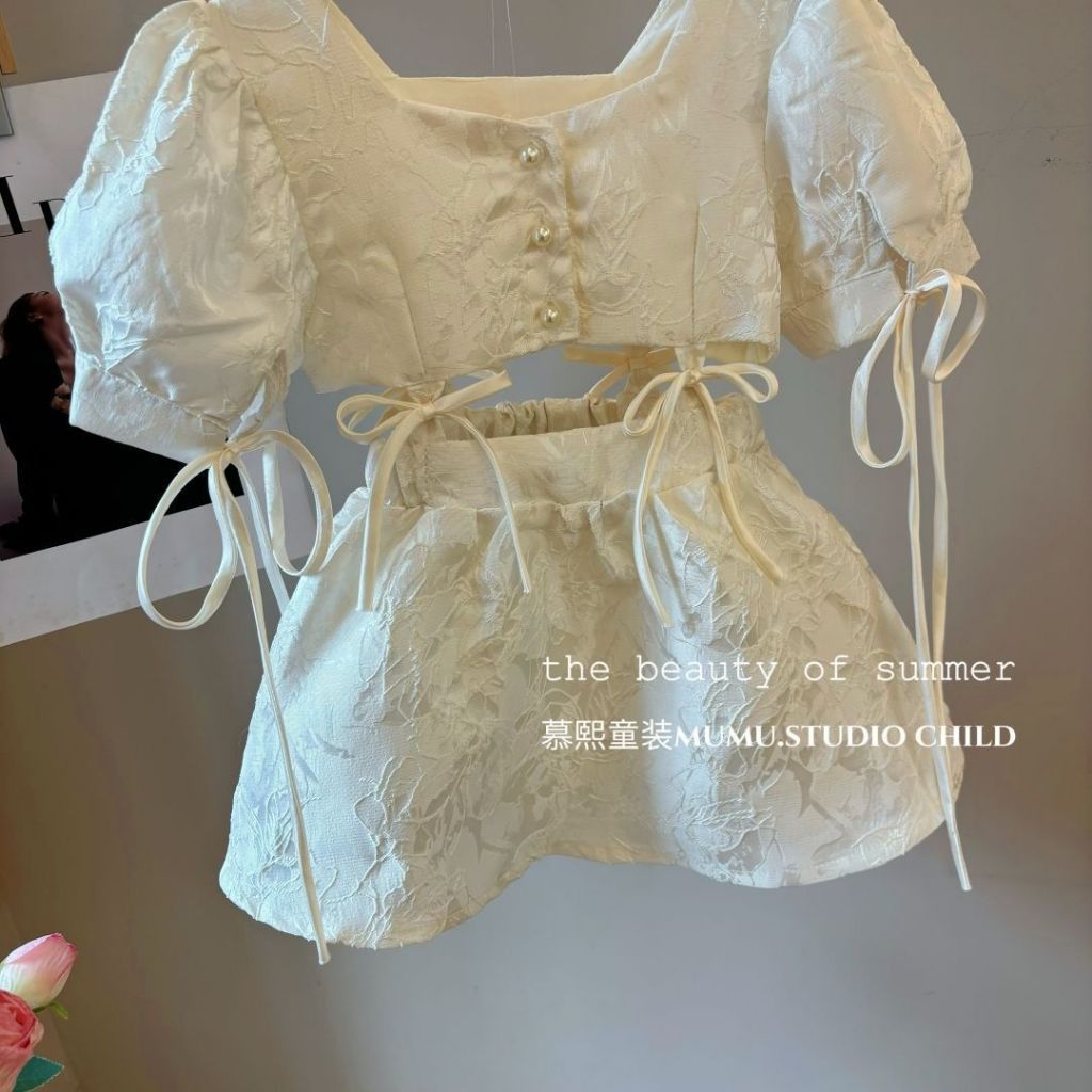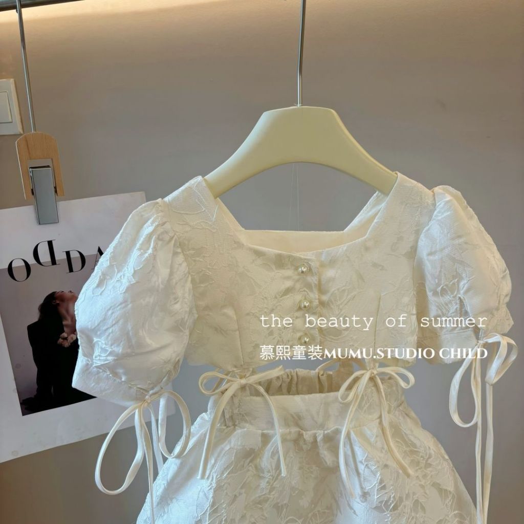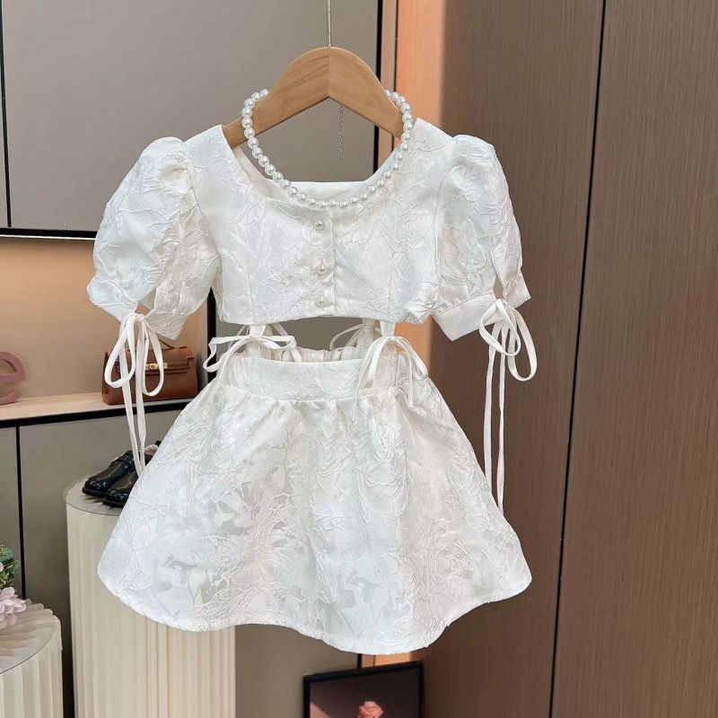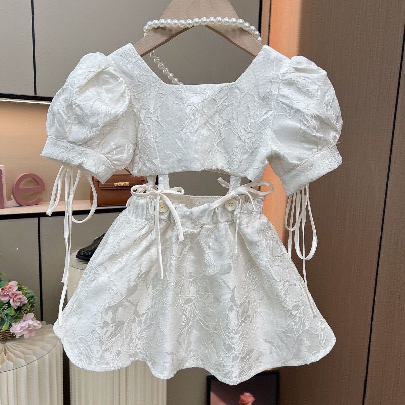 [KIDSWONDERLAND] Setelan Luna Rope Crop Brukat Puff Broken White Anak Perempuan