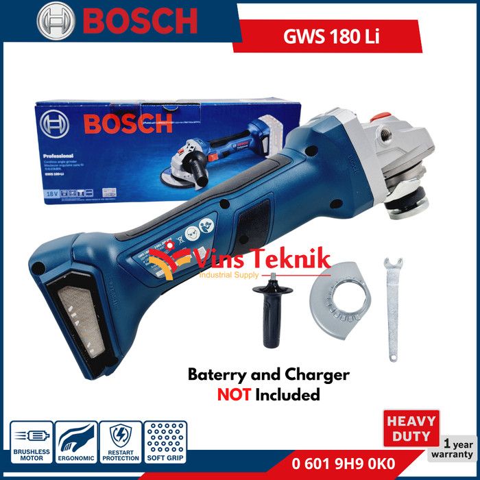 SUPER MESIN GERINDA BATERAI CORDLESS ANGLE GRINDER GWS 180 LI BOSCH GWS180LI