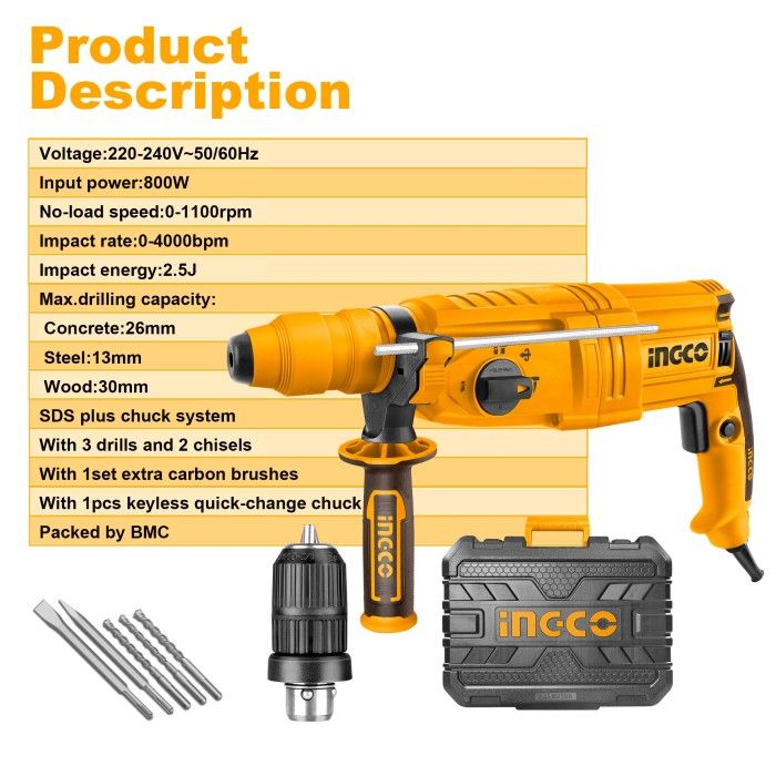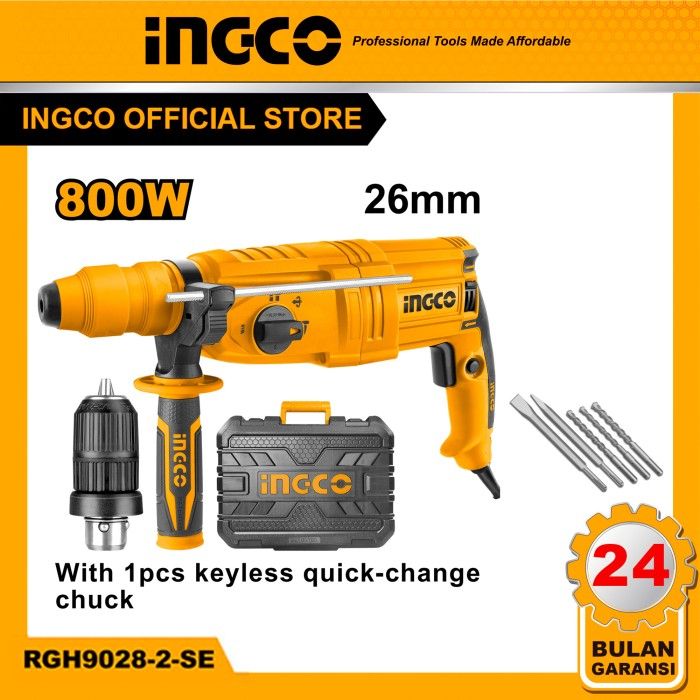 [Mall] SUPER MESIN BOR ROTARY HAMMER 26MM 800W + ADAPTOR RGH9028-2 INGCO - RGH9028-2-SE