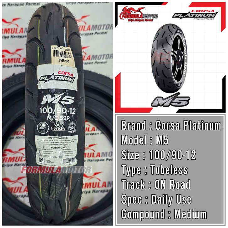 Corsa Platiunum M5 Uk 100/90-12 Tubeless - Ban Luar Motor Scoopy, Freego, Genio Depan Ring 12 Original Produksi Terbaru