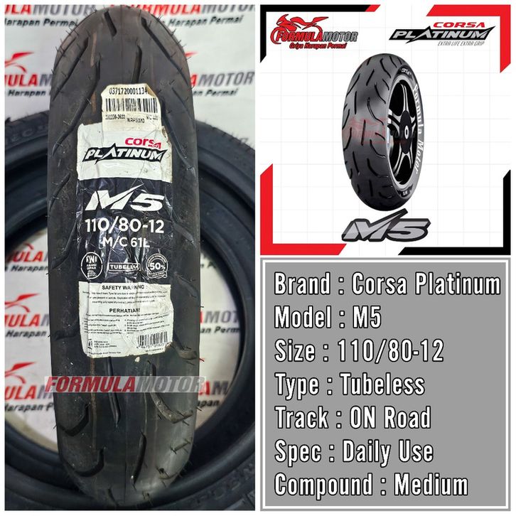 Corsa Platiunum M5 Uk 110/80-12 Tubeless - Ban Luar Motor Scoopy, Freego, Vesva Sprint Ring 12 Original Produksi Baru