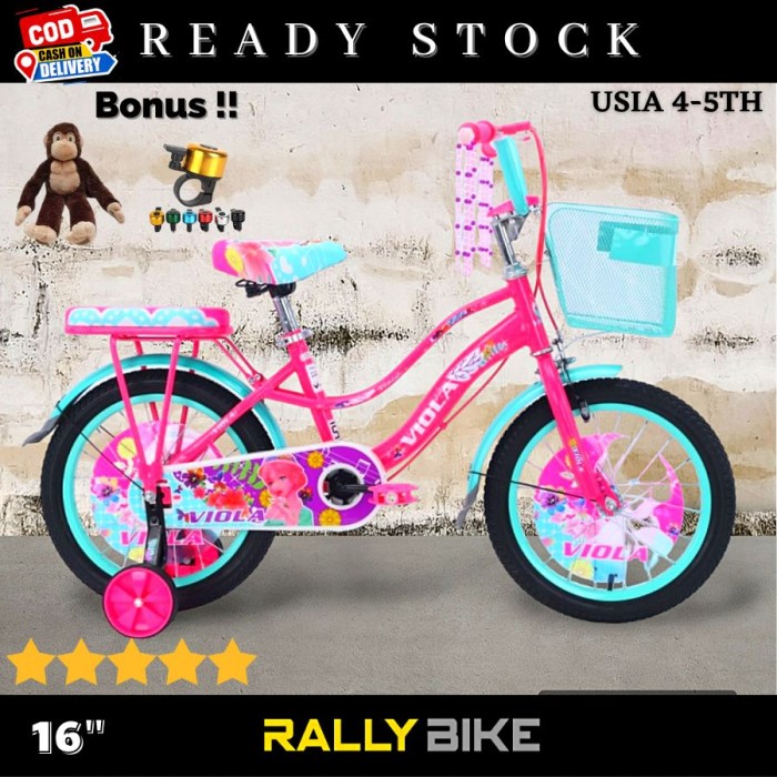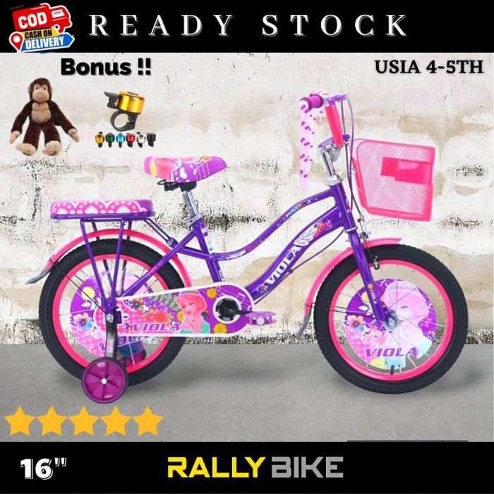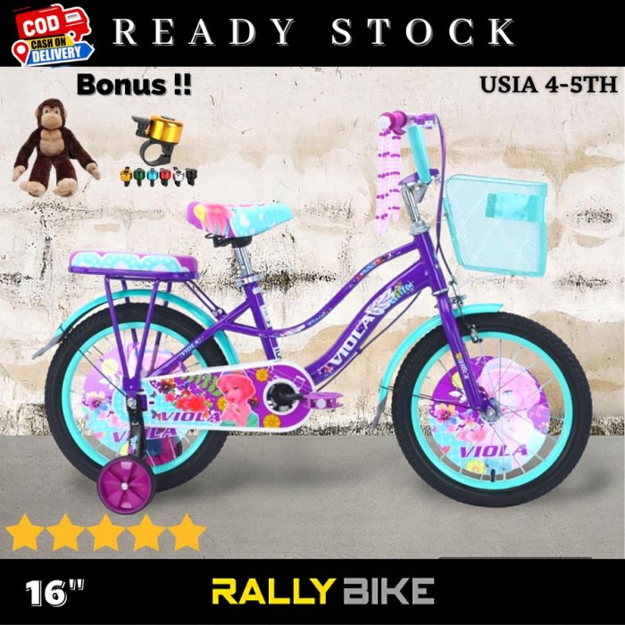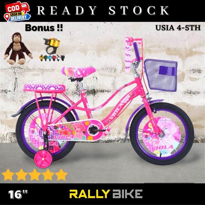 SEPEDAH ANAK UKURAN 16 CEWEK PEREMPUAN UNGU DAN PINK USIA 4 - 5 TAHUN