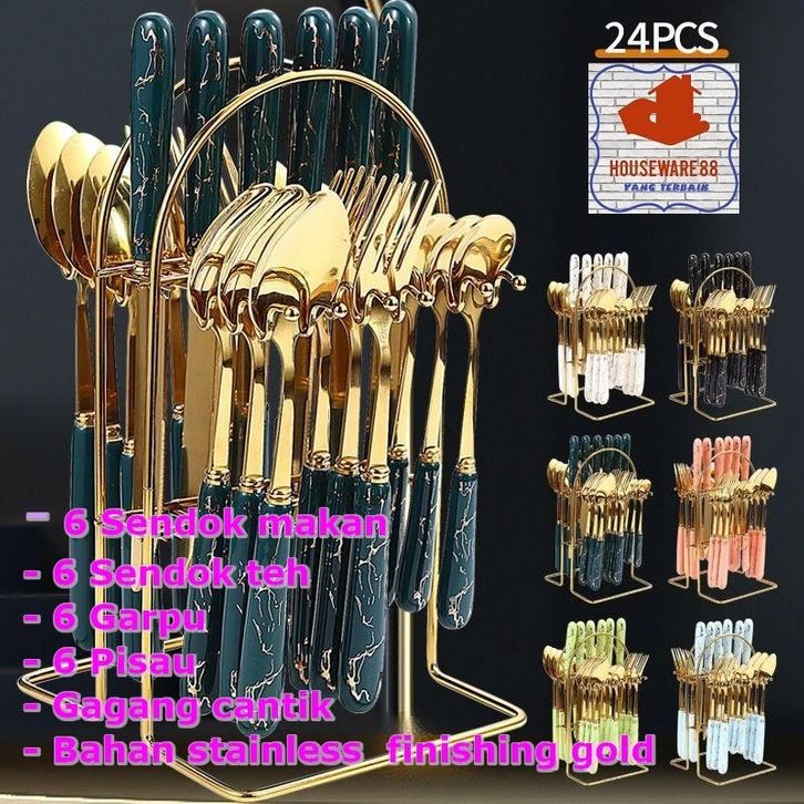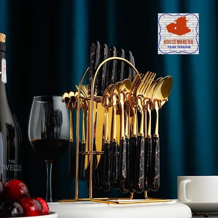 Sendok Cutlery Set Sendok Sultan Makan Set Isi 24 Set Gold Marble Sendok Makan Set Bahan Stainless Tebal Rapi Golden Spo