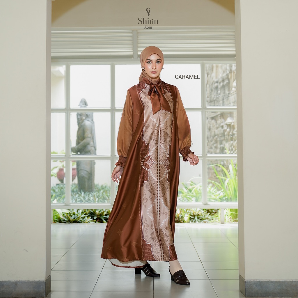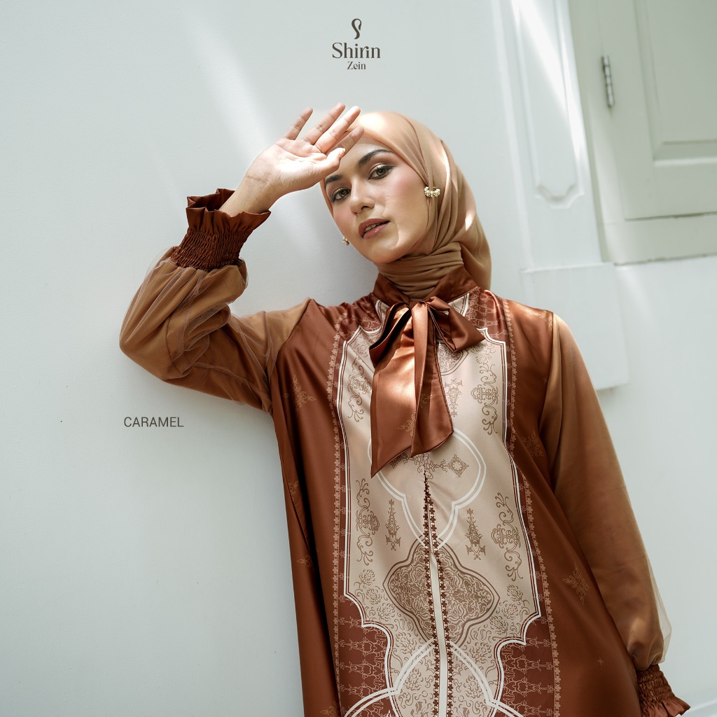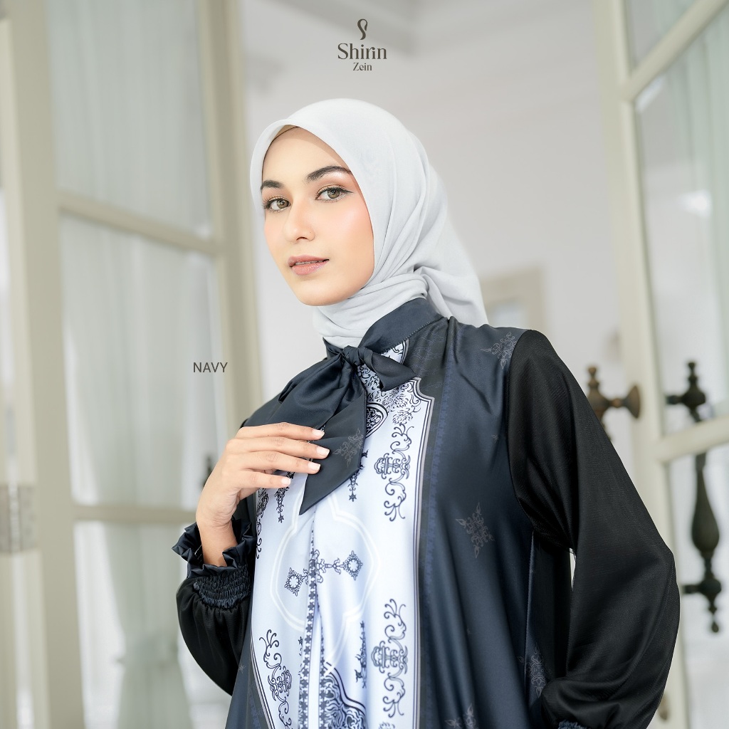 PROMO SPECIAL RAMADHAN Gamis Silk Terbaru Motif Elegan Mix Tulle Dress Lebaran Busui Frendly - Shirin Zein Melisa Series