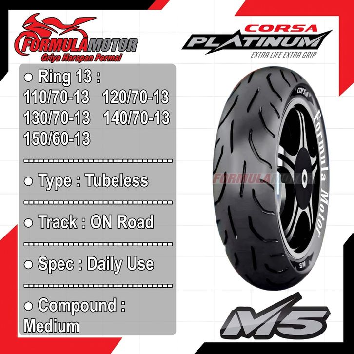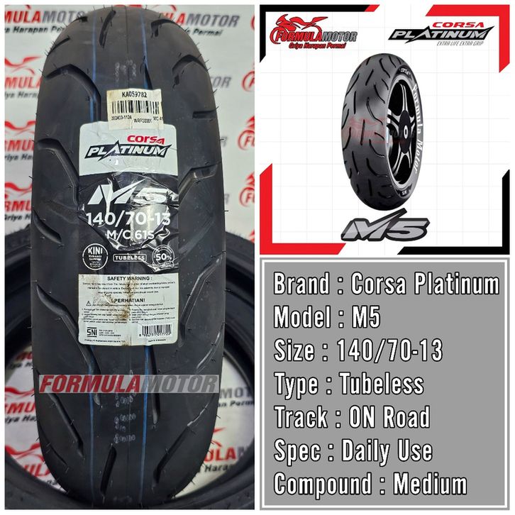 Corsa Platiunum M5 Uk 140/70-13 Tubeless - Ban Luar Motor Matic Yamaha Nmax Belakang Ring 13 Original Produksi Terbaru