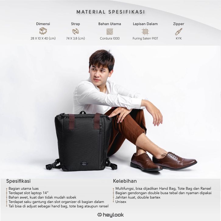 HEYLOOK Official - Tote Bag RAIZE Tas Ransel Laptop Tas Multifungsi Pria Tas Jinjing Pria Wanita Kuliah