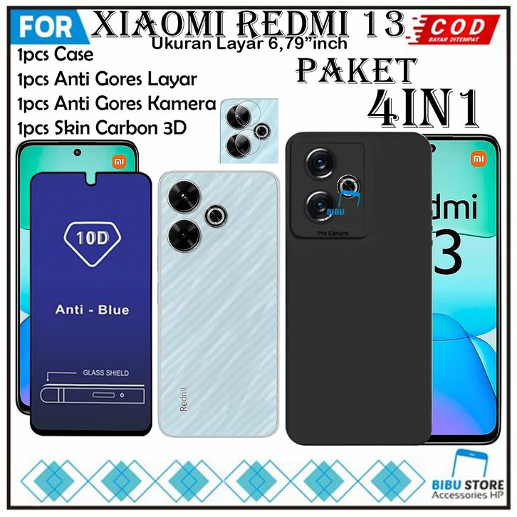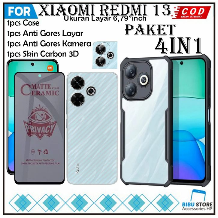 (TERLARIS)Promo Paket 4in1 Case Xiaomi Redmi 13 Softcase Shockproof Transparant Casing