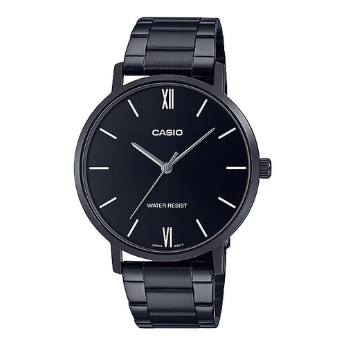 Casio Original MTP VT01B 1B/ MTP-VT01B-1B Jam Tangan Pria Analog Stainless Steel All Black Strap Rantai Hitam
