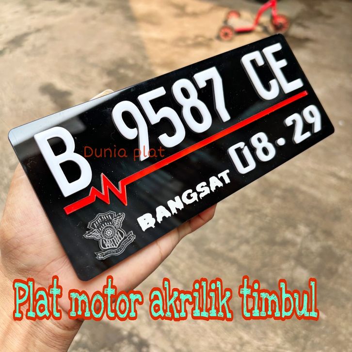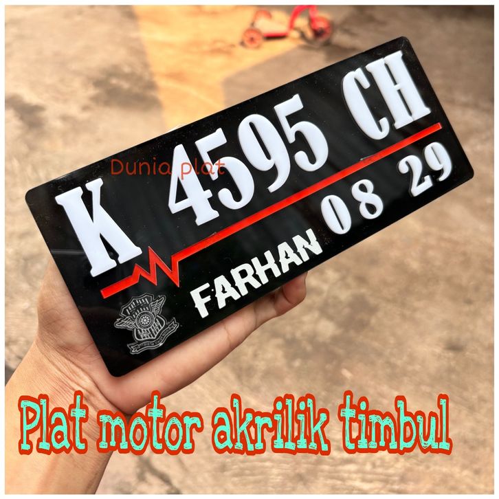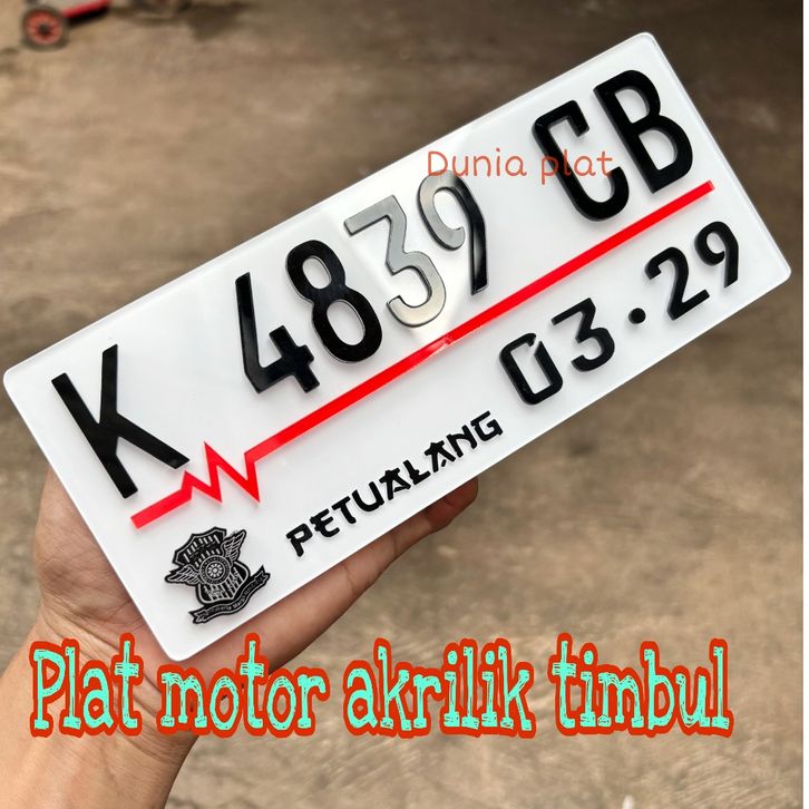 Plat Nomor Motor Acrylic Akrilik Timbul Baut Tanam Custom Putih Hitam Variasi