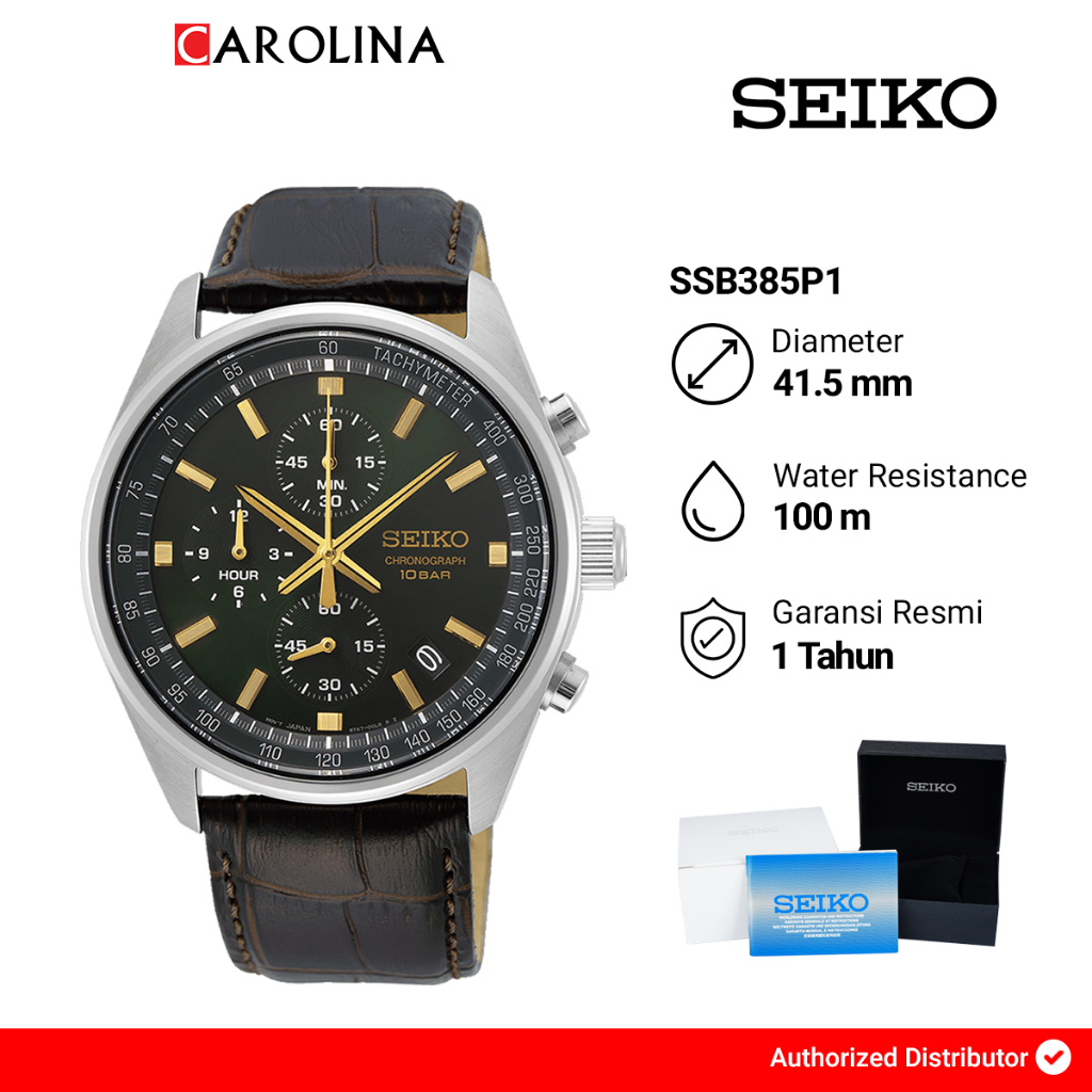 Jam Tangan Pria Seiko Chronograph SSB385P1 Green Dial Brown Leather Strap