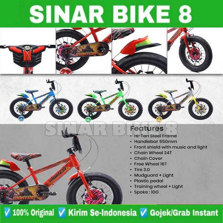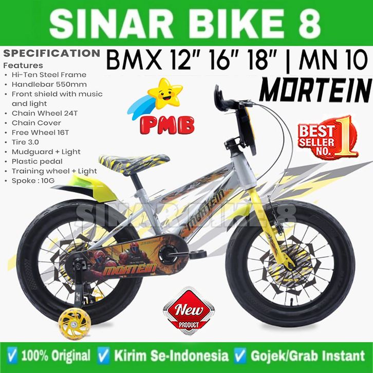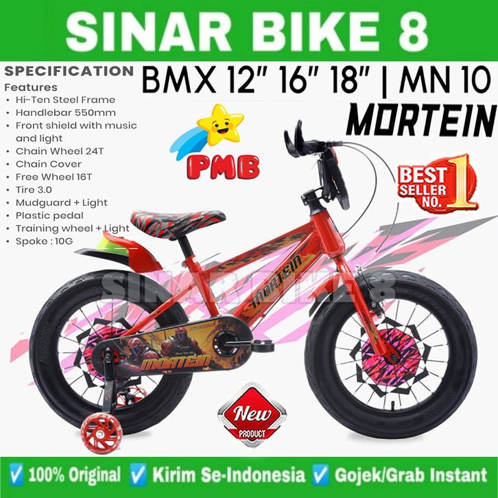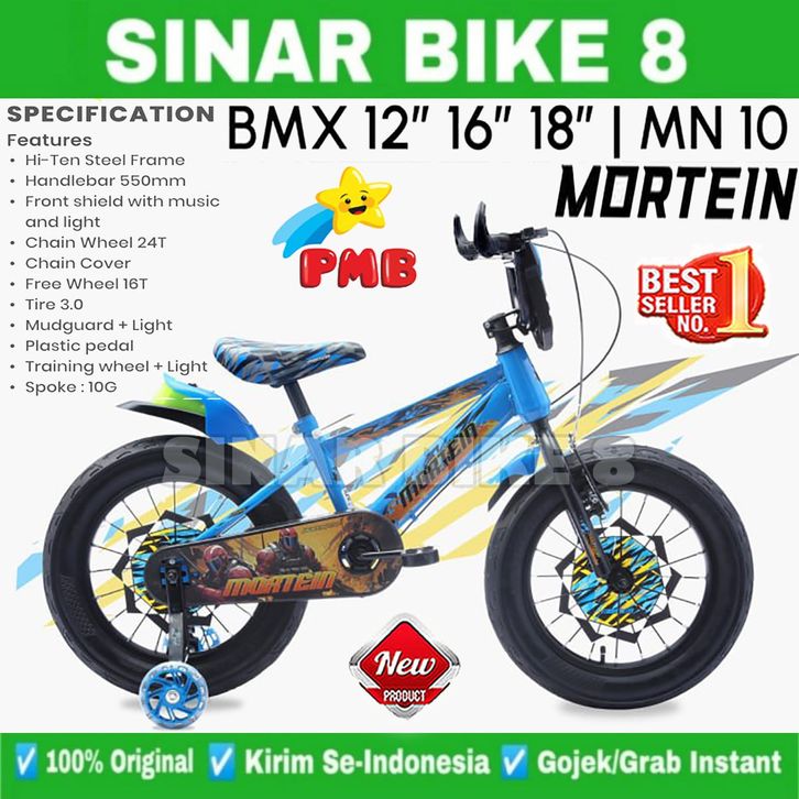 Sepeda Anak Laki BMX MORTIEN MN 10 Ukuran 12 16 18 Inch Ban 3.00 Musik Lampu BY PMB