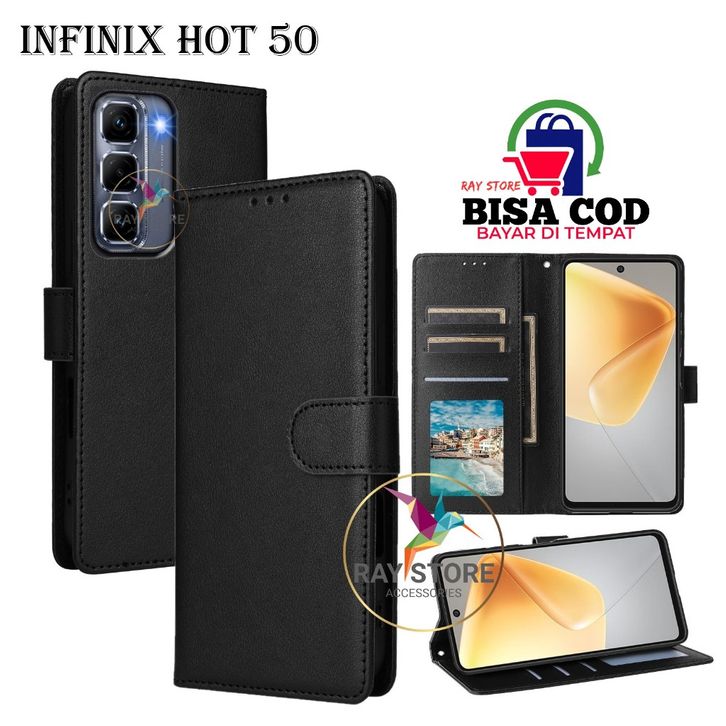 (TERMURAH)INFINIX HOT 50 FLIP LEATHER CASE PREMIUM-FLIP WALLET CASE UNTUK INFINIX HOT 50