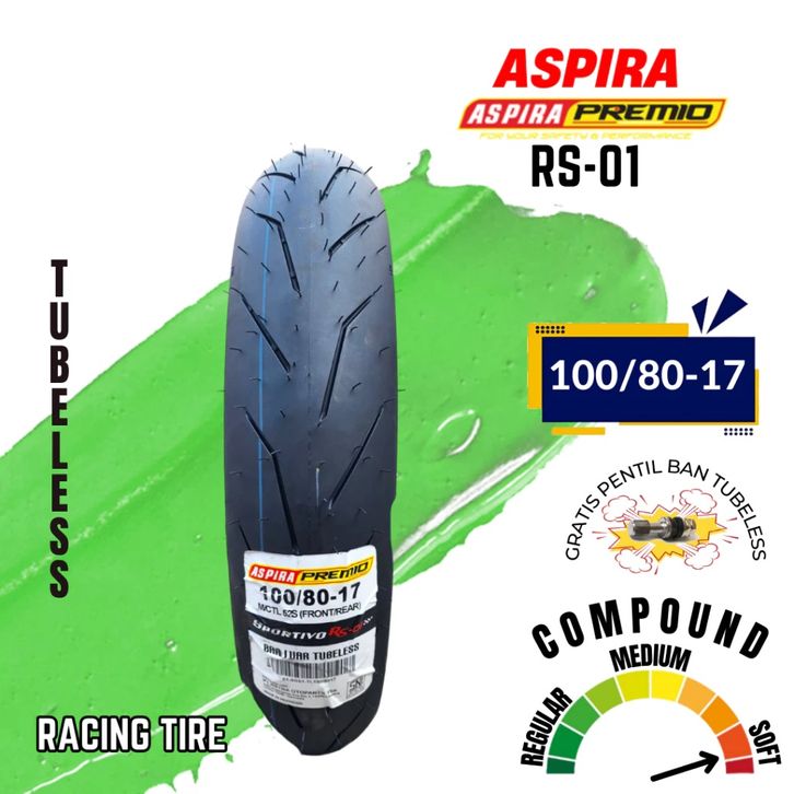 [Mall] BAN MOTOR ASPIRA PREMIO RS-01 TUBELESS UKURAN 90/80-17 & 100/80-17 ORIGINAL ASPIRA OFFICIAL STORE