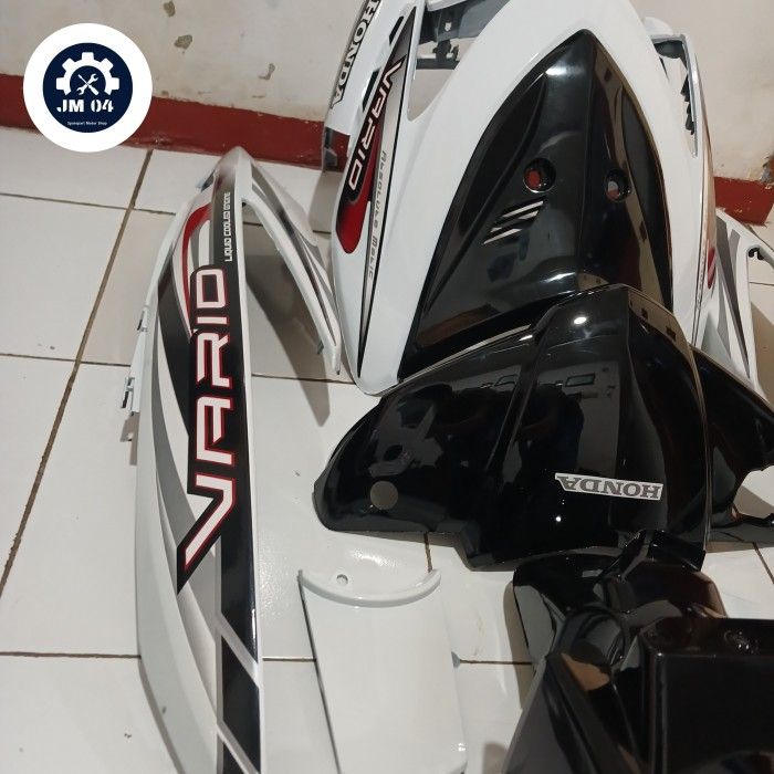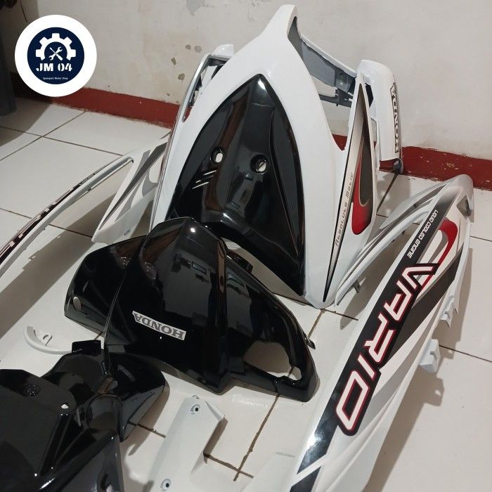 Striping Motor Cover body full halus motor honda vario 110 cw karbu+striping warna putih hitam