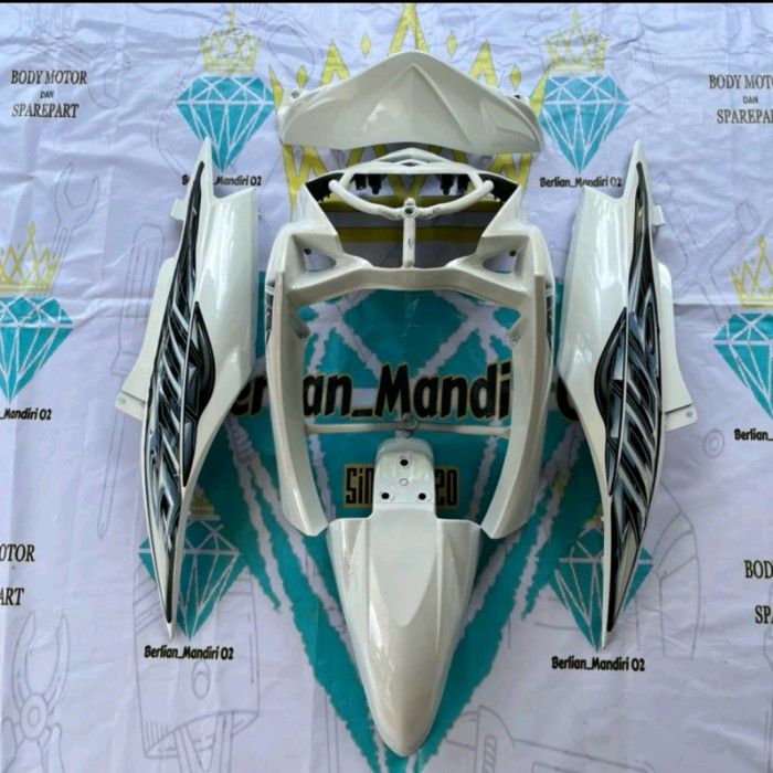 Striping Motor Cover body full halus motor yamaha mio soul karbu plus striping all warna - Hitam