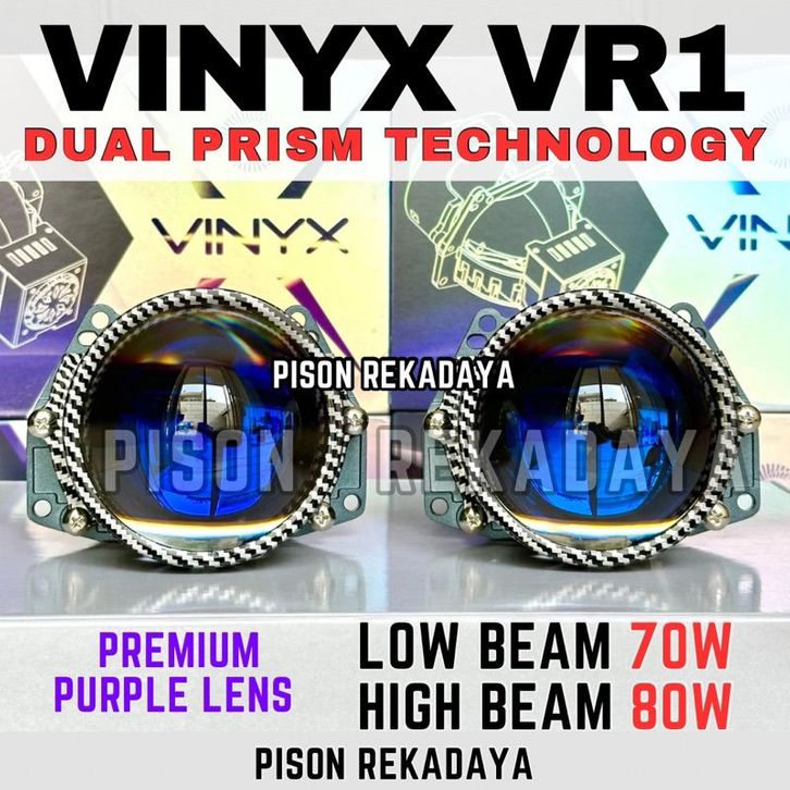 Terbaru! Paket LENGKAP Projector BILED VR1 VR3 Proji Vinyx VR1 3 Inch Dual Prism LED Mobil Motor Proji 3 inci