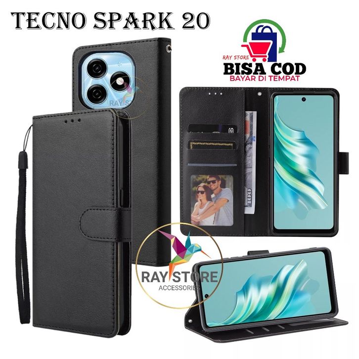 (TERMURAH)TECNO SPARK 20 FLIP LEATHER CASE PREMIUM-FLIP WALLET CASE UNTUK TECNO SPARK 20