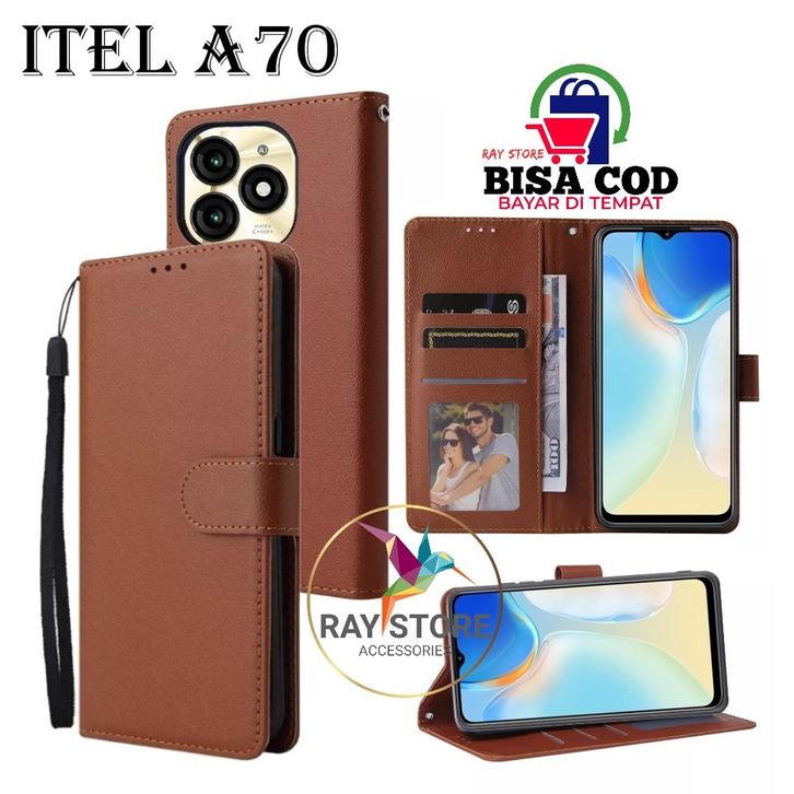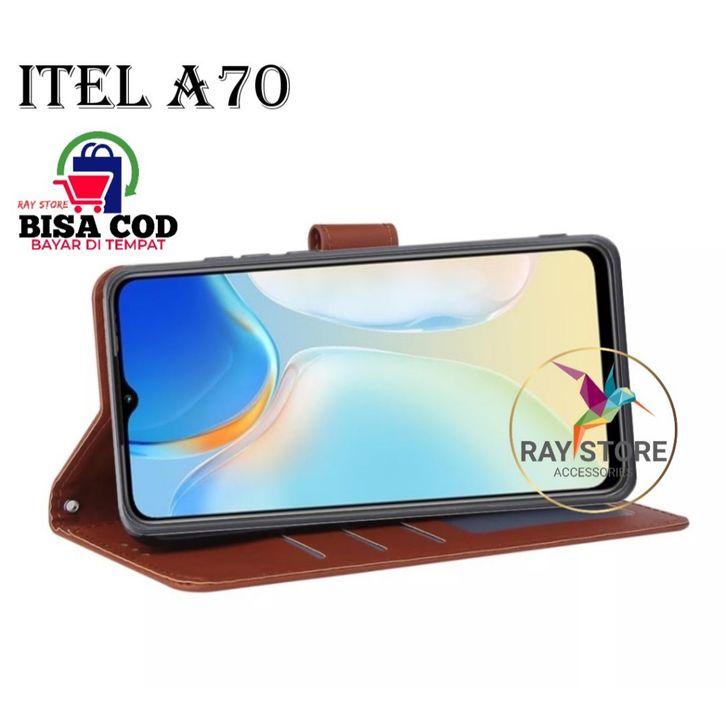 (TERLARIS)ITEL A70 FLIP LEATHER CASE PREMIUM-FLIP WALLET CASE UNTUK ITEL A70
