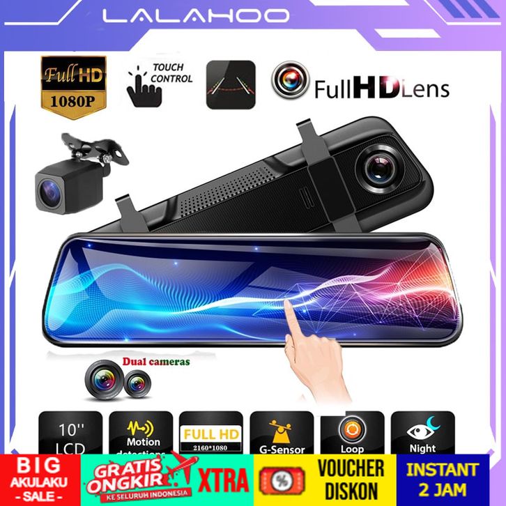 FREE ONGKIR ⚡1296+1080P⚡10'' IPSFREE O Touch Screen Dash Cam Car DVR Rearview Mirror Dual Lens 1296P Night vision Stream
