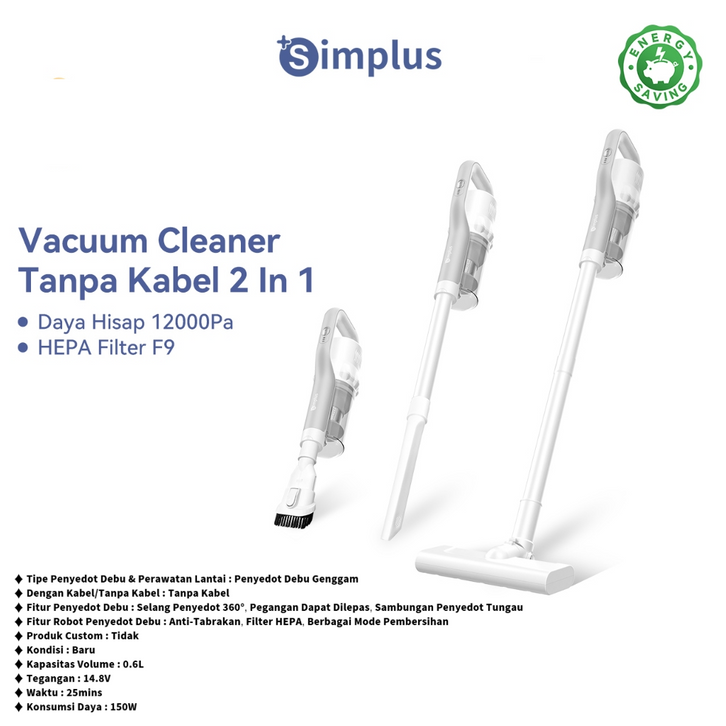 Simplus Vacuum Cleaner 12000Pa Penyedot Debu Cordless Penghisap Debu Wireless untuk Mobil Rumah 2in1