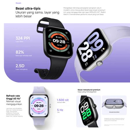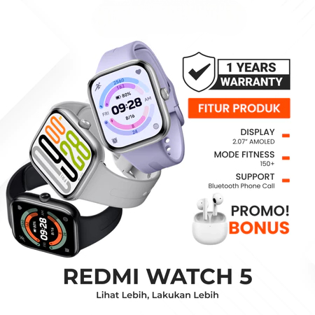 Smartwacth Xiaomi Original Redmi Watch 5 2.07 Inch Amoled | 150+ Mode Olahraga | Tahan Air 5ATM | Baterai Tahan 24 Hari
