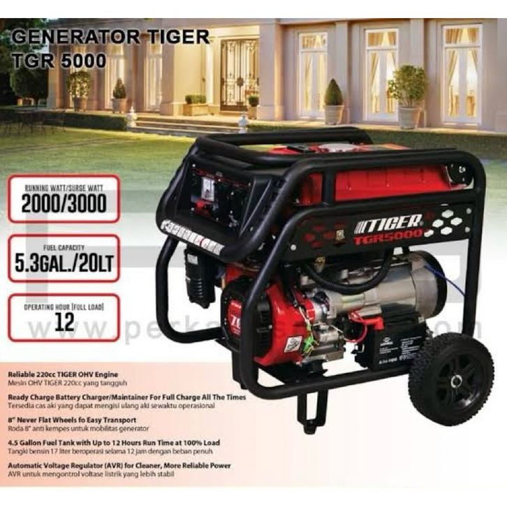 Genset 2500 - 3000 watt TIGER TGR500Genset 2500 - 3000 double stater ada roda dan aki generator listrik KUALITAS TERBAIK