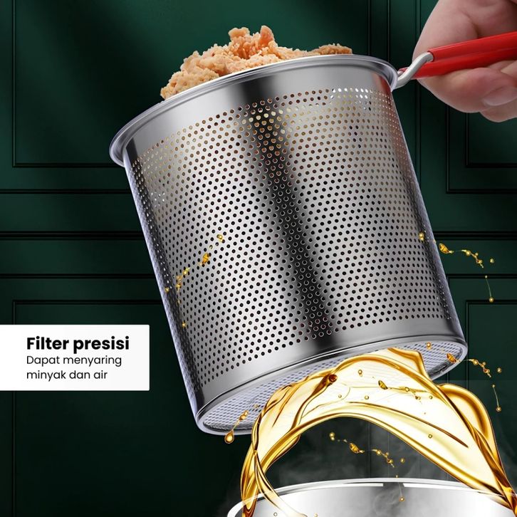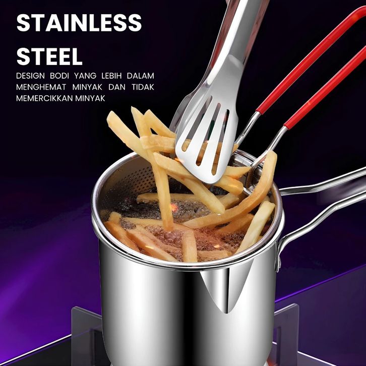 SUNLAND Panci Multifungsi 4 in 1 Deep Fryer Set Penggorengan Rebus Stainless Saringan Capitan Klip