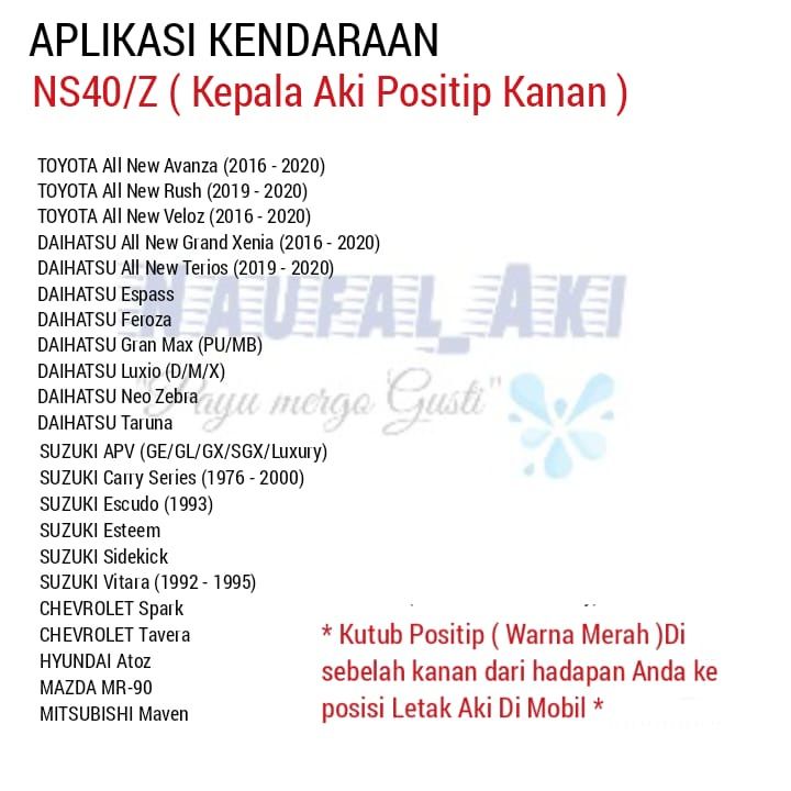 FREE ONGKIR Aki Mobil Avanza/Rush/EFREE ONGKIR Aki Mobispass/Terios/Xenia/Katana/Carry GS ASTRA MF NS40Z Langsung Pasang