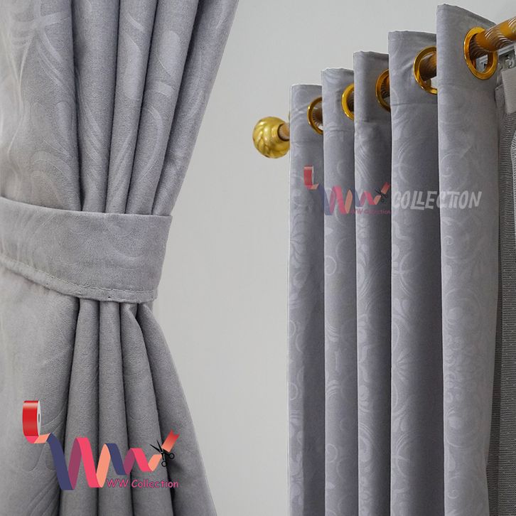 Gorden Jendela Polos Embos Smokering 12 Lubang Desain Elegan Tirai Pintu