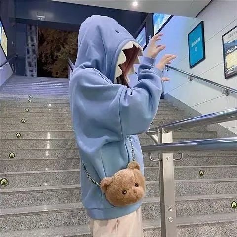HOODIE HIU OVERSIZE LUCU SHARK BORDIR SWEATER PREMIUM WANITA SWEATSHIRT